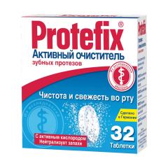 Очищающие таблетки Protefix® (Протефикс) содержат активный кислород. Они, не повреждая протез механически, идеально очищают его даже в самых труднодоступных местах, уничтожают практически все болезнетворные микроорганизмы и неприятные запахи, удаляют налет и зубной камень, восстанавливают естественный цвет протезов и позволяют избежать инфекций в полости рта.