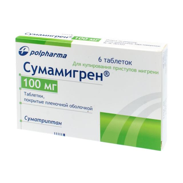Сумамигрен таблетки покрытые оболочкой 100мг №6