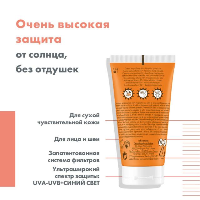 Авен крем солнцезащитный SPF50+ без отдушек 50мл