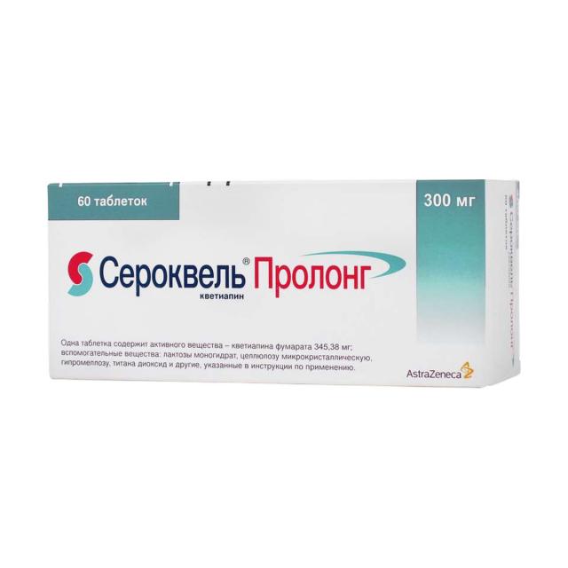 Активное вещество: 345,38 мг кветиапина фумарата (эквивалентно 300,00 мг кветиапина)