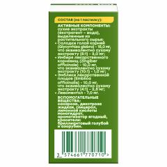 Комбинированный препарат растительного происхождения с противовоспалительным и отхаркивающим действием. Действие препарата обусловлено свойствами входящих в его состав компонентов. Экстракт корней солодки голой обладает противовоспалительным, отхаркивающим, спазмолитическим действием; экстракт корневища имбиря лекарственного оказывает противовоспалительное и болеутоляющее действие; экстракт эмблики лекарственной – противовоспалительное и жаропонижающее действие. Входящий в состав препарата ментол оказывает спазмолитическое, антисептическое действие.