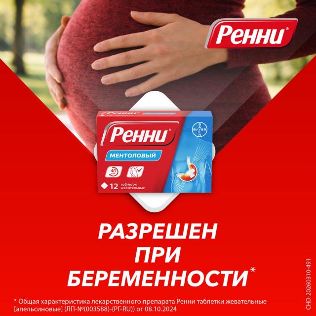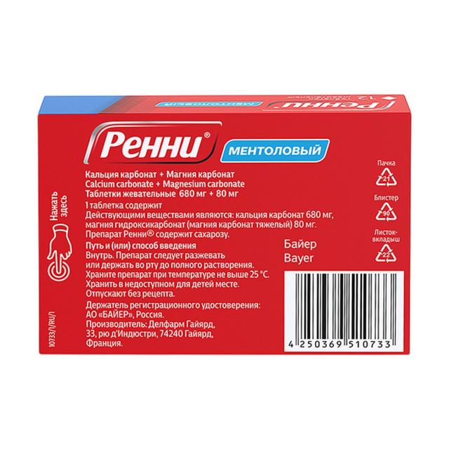 Ренни таблетки жевательные ментол №12