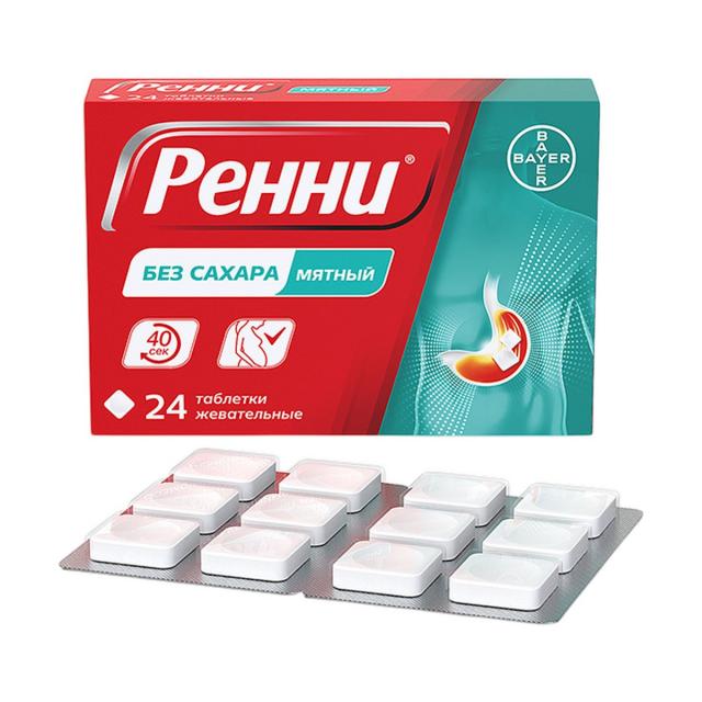 Ренни таблетки жевательные без сахара мята №24