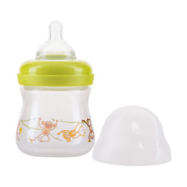 Бутылочка комплектуется силиконовой соской с антивакуумным клапаном, который снижает вероятность заглатывания малышом воздуха при сосании.