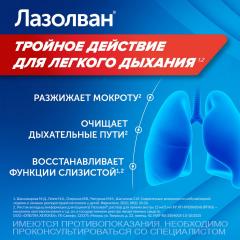 В исследованиях показано, что амброксол — активный ингредиент Лазолвана - увеличивает секрецию в дыхательных путях. Он усиливает продукцию легочного сурфактанта и стимулирует цилиарную активность. Эти эффекты приводят к усилению тока и транспорта слизи (мукоцилиарного клиренса). Усиление мукоцилиарного клиренса улучшает отхождение мокроты и облегчает кашель. У пациентов с хронической обструктивной болезнью легких длительная терапия Лазолван ом (на протяжении не менее 2 месяцев) приводила к значительному снижению числа обострений. Отмечалось достоверное уменьшение длительности обострений и числа дней антибиотикотерапии.