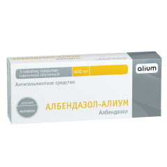 Основной механизм действия албендазола - его ингибирующий эффект на бетатубулинаполимеризацию, которая ведет к деструкции цитоплазматических микроканальцев клеток кишечного тракта гельминтов: изменяет течение биохимических процессов (подавляет утилизацию глюкозы), блокирует передвижение секреторных гранул и др. органелл в мышечных клетках круглых червей, обусловливая их гибель. Наиболее эффективно влияет на личиночные формы цестод - Echinococcus granulosus и Taenia solium, нематод - Strongyloides stercolatis. Фармакокинетика. Плохо абсорбируется в желудочно-кишечном тракте, в неизмененном виде не определяется в плазме крови, т.к. быстро превращается в печени в первичный метаболит - албендазола сульфоксид, также обладающий антигельминтной активностью. Биодоступность при приеме внутрь низкая, около 30%. Прием жирной пищи повышает всасывание и максимальную концентрацию (в 5 раз). Максимальная концентрация албендазола сульфоксида достигается через 2-5 ч, на 70% связан с белками плазмы, л практически полностью распространяется по организму; обнаруживается в моче, желчи, печени, в стенке кисты и кистозной жидкости, спинномозговой жидкости. Албендазола сульфоксид в печени превращается в албендазола сульфон (вторичный метаболит) и другие окисленные продукты. Период полувыведения албендазола сульфоксида - 8-12 ч. Выводится в виде различных метаболитов с мочой. Почечное выведение албендазола и его основного метаболита, албендазола сульфоксида, незначительное, клиренс не меняется у больных с нарушенной функцией почек. На фоне поражения печени - биодоступность повышается, максимальная концентрация албендазола сульфоьсида увеличивается в 2 раза, период полувыведения удлиняется. Албендазол является индуктором микросомальных ферментов системы цитохрома Р-450: ускоряет метаболизм многих лекарственных препаратов.