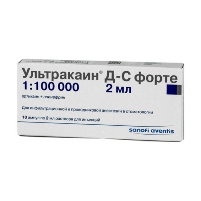Ультракаин Д-С форте - местный анестетик для инфильтрационной и проводниковой анестезии в стоматологической практике. Оказывает быстрое действие (латентный период - от 1 до 3 минут). Продолжительность анестезии составляет не менее 75 мин.