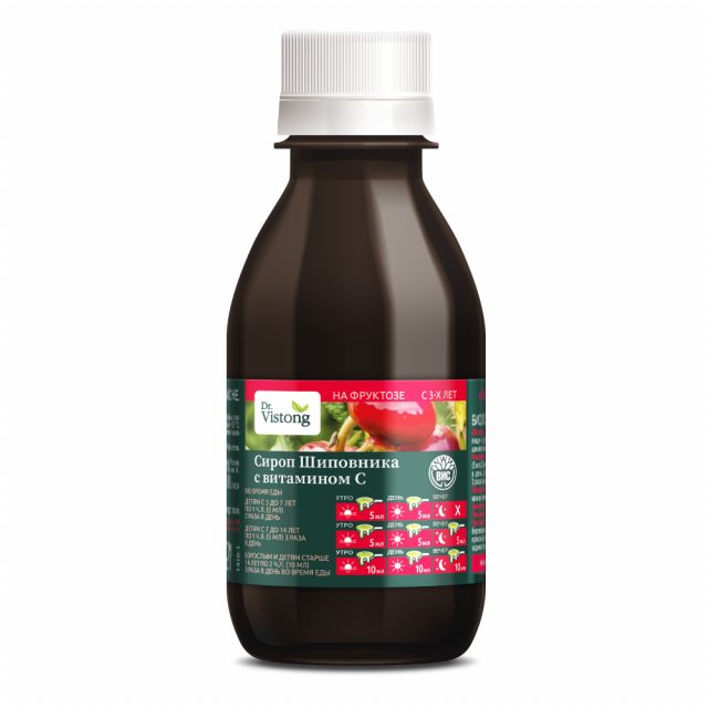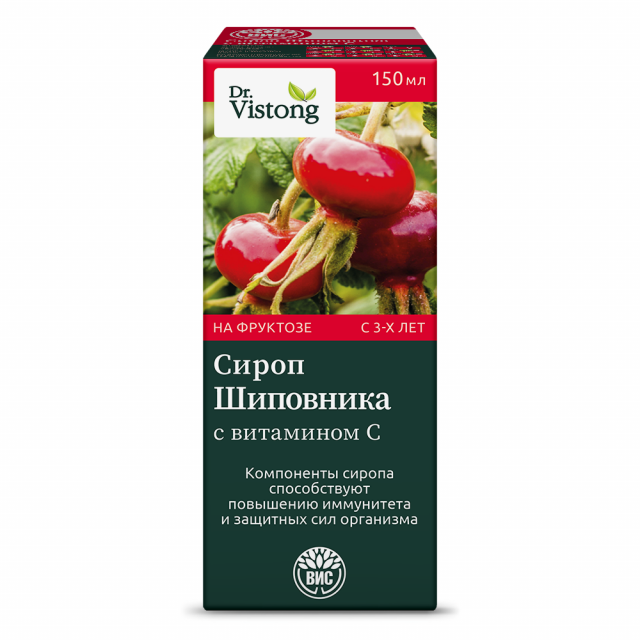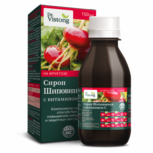 «Dr. Vistong» сироп Шиповника с витамином С показан как специализированный продукт диетического лечебного и профилактического питания, дополнительного источника витамина С, способствующего повышению иммунитета и защитных сил организма человека. Компоненты сиропа обладают поливитаминным и общеукрепляющим свойствами.