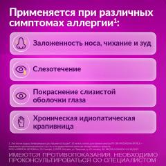 Сезонный и круглогодичный аллергический ринит, поллиноз, аллергический конъюнктивит, хроническая идиопатическая крапивница, кожный зуд, ангионевротический отек; комплексная терапия атопического дерматита, хронической экземы, бронхиальной астмы.