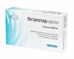 Препарат Октреотид-депо представляет собой лекарственную форму октреотида длительного действия для внутримышечного введения, обеспечивающую поддержание стабильных терапевтических концентраций октреотида в крови в течение 4-х недель. Октреотид является средством патогенетической терапии при опухолях, активно экспрессирующих рецепторы к соматостатину. Октреотид - синтетический октапептид, являющийся производным естественного гормона соматостатина и обладающий сходными с ним фармакологическими эффектами, но значительно большей продолжительностью действия. Препарат подавляет патологически повышенную секрецию гормона роста (ГР), а также пептидов и серотонина, продуцируемых в гастро - энтеро - панкреатической эндокринной системе. У здоровых лиц октреотид, подобно соматостатину, подавляет секрецию ГР, вызываемую аргинином, физической нагрузкой и инсулиновой гипогликемией; секрецию инсулина, глюкагона, гастрина и других пептидов гастро-энтеро-панкреатической эндокринной системы, вызываемую приемом пищи, а также секрецию инсулина и глюкагона, стимулируемую аргинином; секрецию тиреотропина, вызываемую тиреолиберином. Подавляющее действие на секрецию ГР у октреотида, в отличие от соматостатина, выражено в значительно большей степени, чем на секрецию инсулина. Введение октреотида не сопровождается феноменом гиперсекреции гормонов по механизму отрицательной обратной связи. У больных акромегалией введение депо-формы октреотида обеспечивает в подавляющем большинстве случаев стойкое снижение концентрации ГР и нормализацию концентрации инсулиноподобного фактора роста 1/ соматомедина С (ИФР-1). У большинства больных акромегалией депо-форма октреотида существенно уменьшает выраженность таких симптомов, как головная боль, повышенное потоотделение, парестезии, усталость, боли в костях и суставах, периферическая нейропатия. Сообщалось, что лечение депо-формой октреотида отдельных больных с аденомами гипофиза, секретирующими ГР, приводило к уменьшению размеров опухоли. При секретирующих эндокринных опухолях желудочно-кишечного тракта (ЖКТ) и поджелудочной железы применение депо-формы октреотида обеспечивает постоянный контроль основных симптомов этих заболеваний. Депо-форма октреотида в дозе 30 мг каждые 4 недели замедляет рост опухоли у пациентов с секретирующими и несекретирующими распространенными (метастатическими) нейроэндокринными опухолями тощей, подвздошной, слепой, восходящей ободочной, поперечной ободочной кишки и червеобразного отростка, или метастазами нейроэндокринных опухолей без первично выявленного очага. Препарат был эффективен в увеличении времени до прогрессирования, как для секретирующих, так и для несекретирующих нейроэндокринных опухолей. При карциноидных опухолях применение октреотида может приводить к уменьшению выраженности симптомов заболевания, в первую очередь, таких как приливы и диарея. Во многих случаях клиническое улучшение сопровождается снижением концентрации серотонина в плазме и экскреции 5-гидроксииндолуксусной кислоты с мочой. При опухолях, характеризующихся гиперпродукцией вазоактивного интестинального пептида (ВИПомы), применение октреотида приводит у большинства больных к уменьшению тяжелой секреторной диареи, которая характерна для данного состоя