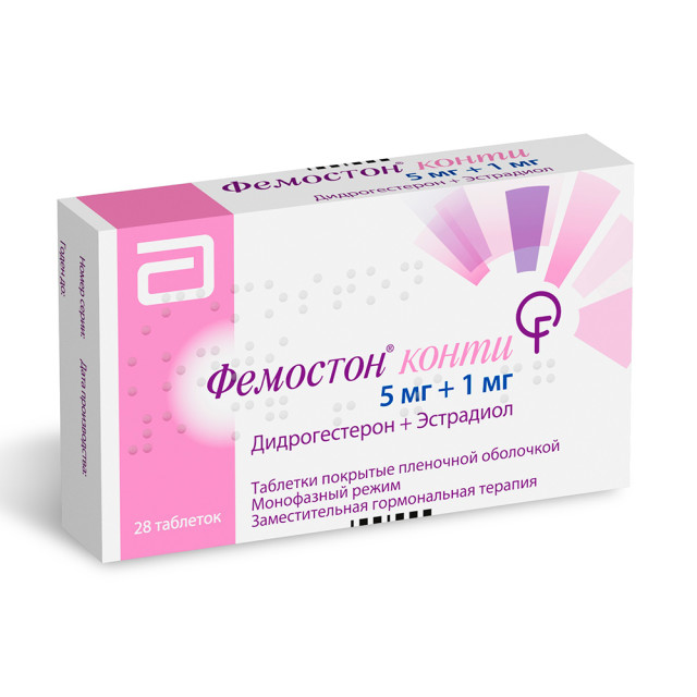 Противопоказания: беременность и период грудного вскармливания; диагностированный или предполагаемый рак молочной железы; диагностированные или предполагаемые эстрогензависимые злокачественные новообразования (например, рак эндометрия); диагностированные или предполагаемые прогестагензависимые новообразования (например, менингиома); кровотечения из влагалища неясной этиологии; нелеченная гиперплазия эндометрия; тромбозы (артериальные и венозные) и тромбоэмболии в настоящее время или в анамнезе (в том числе тромбоз, тромбоз глубоких вен; тромбоэмболия легочной артерии, инфаркт миокарда, ишемические или геморрагические цереброваскулярные нарушения); множественные или выраженные факторы артериального или венозного тромбоза, связанные с врожденной или приобретенной предрасположенностью, например, недостаточность протеина С, недостаточность протеина S, недостаточность антитромбина III, наличие антител к фосфолипидам (антитела к кардиолипину, волчаночный антикоагулянт), стенокардия, длительная иммобилизация, тяжелые формы ожирения (индекс массы тела более 30 кг/м2), заболевания сосудов головного мозга или коронарных артерий, транзиторные ишемические атаки, осложненные поражения клапанного аппарата сердца, фибрилляция предсердий; острые или хронические заболевания печени в настоящее время или в анамнезе (до нормализации показателей функциональных проб печени), в том числе злокачественные опухоли печени; порфирия; повышенная чувствительность к компонентам препарата; непереносимость галактозы, недостаточность лактазы, синдром мальабсорбции глюкозы-галактозы. Прием препарата Фемостон® конти следует прекратить при выявлении противопоказаний и/или при возникновении следующих состояний: желтухи и/или нарушения функции печени; неконтролируемой артериальной гипертензии; впервые появившейся на фоне применения препаратов для ЗГТ мигренеподобной головной боли.