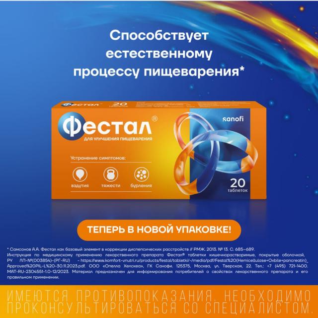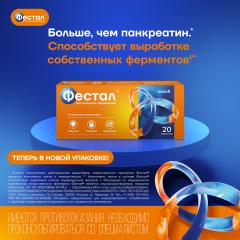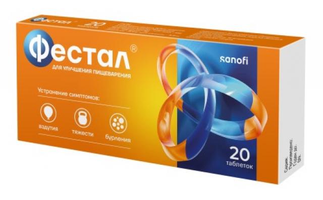 Фестал - драже 20 шт., трехкомпонентное ферментное средство