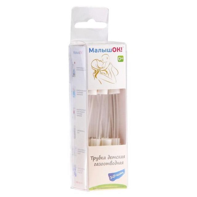 Трубка детская газоотводная Малышок - это удобное и безопасное средство для удаления газов из кишечника грудничка, болезненные колики у детей, вялая перистальтика. Каждая трубка для одноразового использования. Трубки выполнены из мягкого гипоаллергенного материала и имеют удобную форму для введения в прямую кишку. В упаковке 10 трубок, что обеспечивает длительное использование. Проблемы излишнего газообразования и появляющиеся от этого колики могут беспокоить малышей до четырех месяцев и далее. Края трубки тщательно обработаны и закруглены для обеспечения атравматичной установки, 2 боковых отверстия для лучшего отвода газов. Использование газоотводных трубок помогает избежать дискомфорта и болезненных ощущений у малыша, а также способствует его здоровому сну и улучшает аппетит.