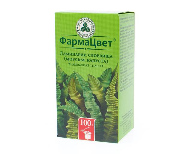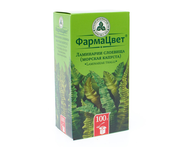 Слоевища, измельченные по 100 г в пачках из картона с внутренним пакетом.