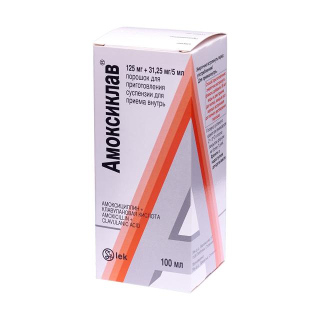 Амоксиклав порошок для приготовления суспензии внутрь 125мг+31,25мг/5мл 100мл