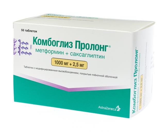 Комбоглиз пролонг таблетки покрытые оболочкой 1000мг+2,5мг №56
