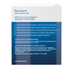 Лекарственная форма: таблетки для рассасывания (апельсиновые, лимонные, медово-лимонные, черносмородиновые)