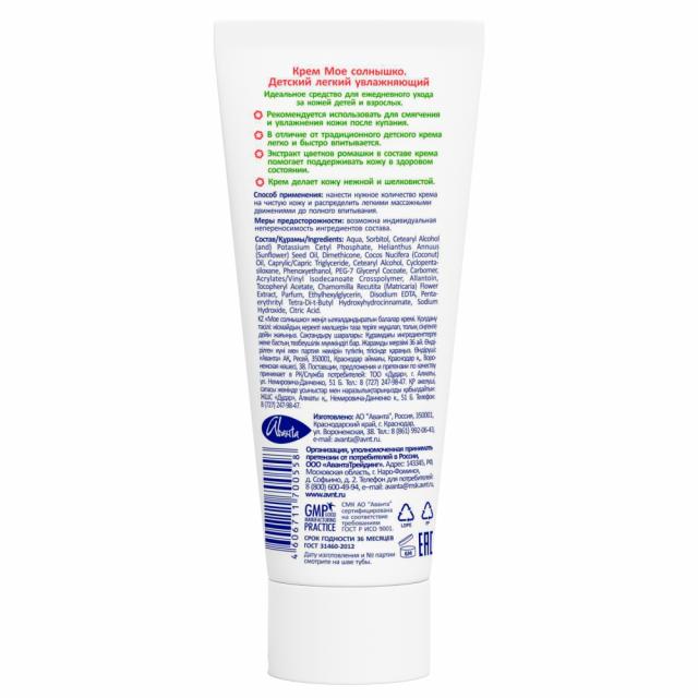 Мое солнышко крем Детский легкий увлажняющий 75мл