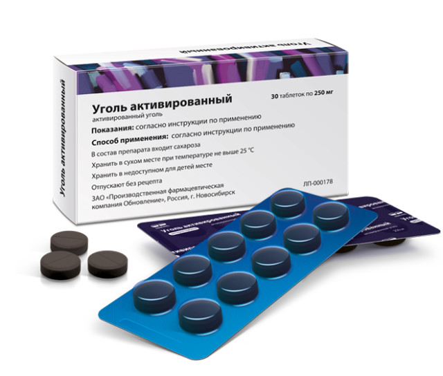 Активное вещество: уголь активированный – 0,25 г.