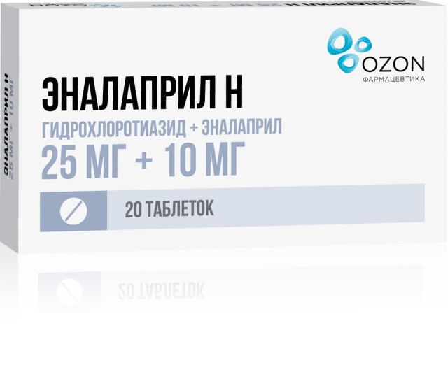 Эналаприл Н Озон таблетки 25мг+10мг №20