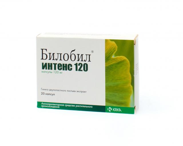 препаратБилобил интенс содержит стандартизированный экстракт листьев гинкго билоба, основными компонентами которого являются флавоновые гликозиды, терпеновые соединения (гинкголиды и билобалиды). Именно эти активные вещества экстракта обусловливают его специфическую фармакологическую активность.