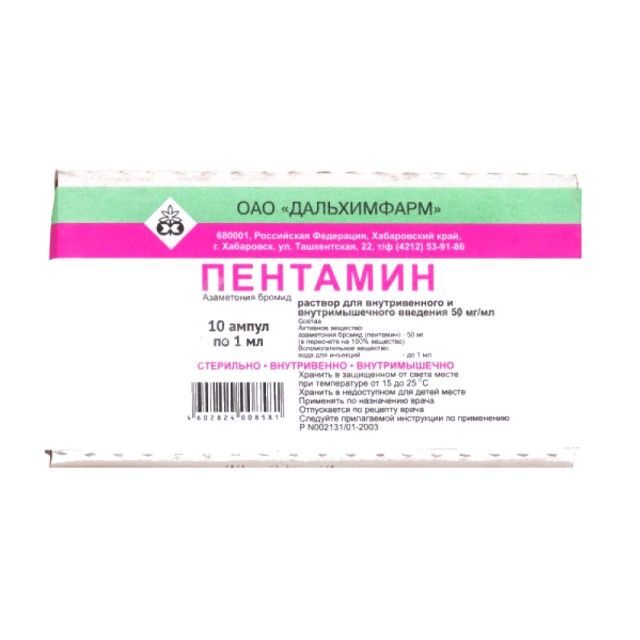 Пентамин раствор внутривенно внутримышечно 50мг/мл 1мл №10