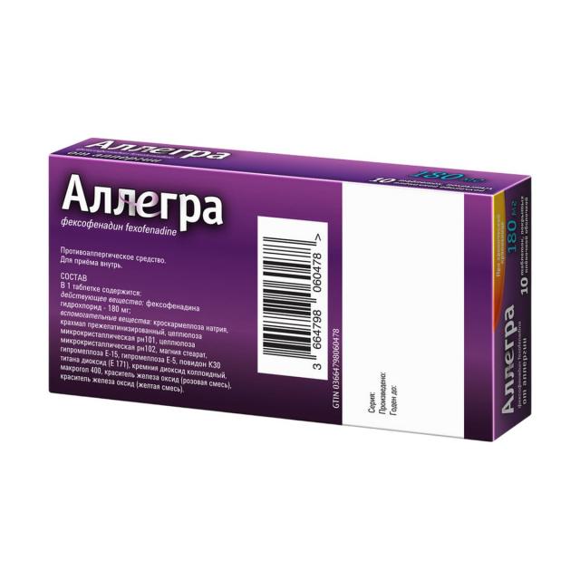 Аллегра таблетки покрытые оболочкой 180мг №10