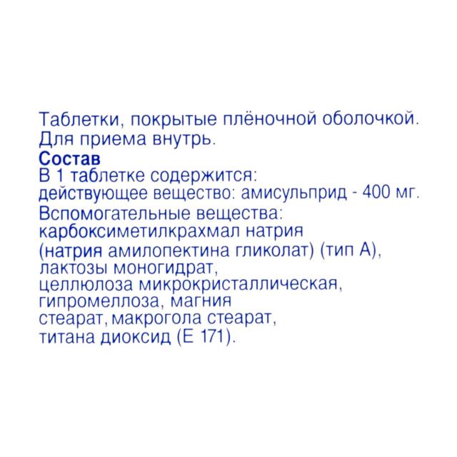 действующее вещество: амисульприд - 400 мг;
