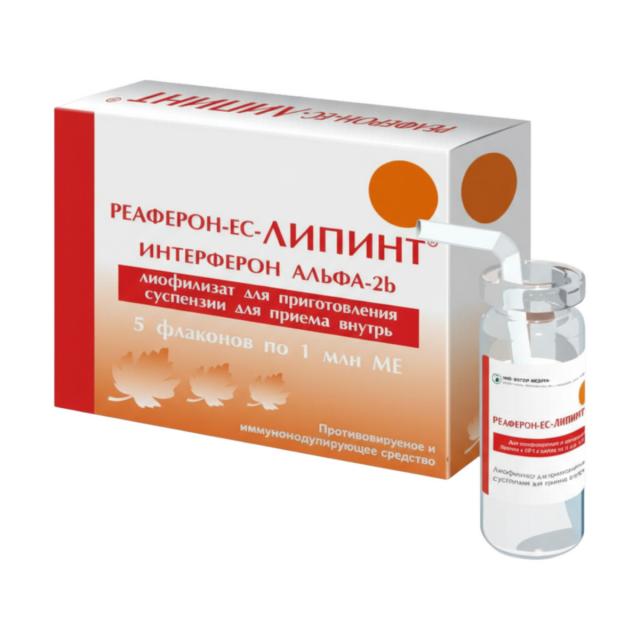 Реаферон-ЕС-Липинт лиофилизат для приготовления суспензии для приема внутрь 1000000 МЕ №5