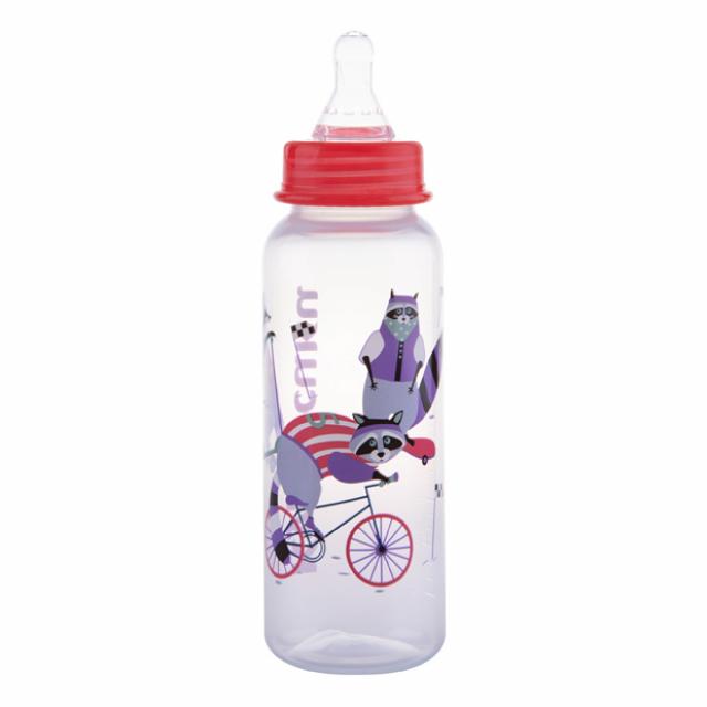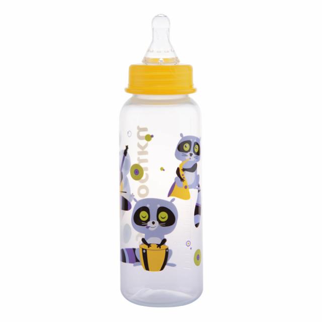 Бутылочка прямая с силиконовой соской без ручек "Еноты" ассорти, 250 мл - 11004