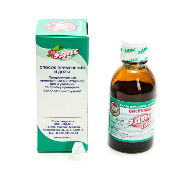 Максимальная разовая доза препарата содержит 0,03 г абсолютного спирта этилового. Максимальная суточная доза препарата содержит 0,1 г абсолютного спирта этилового. Возможна замена капель гомеопатических ВИСКУМЕЛ ЭДАС-137 гранулами ВИСКУМЕЛ ЭДАС-937, которые идентичны по составу активных компонентов.