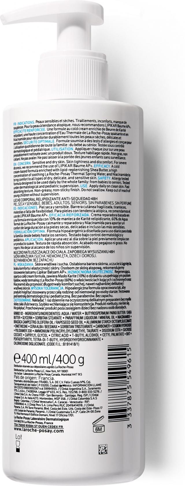 Ля рош позе Липикар молочко увлажняющее 400мл