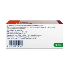 Периндоприл не обладает фармакологической активностью. Приблизительно 27 % от общего количества абсорбированного периндоприла попадает в кровоток в виде активного метаболита периндоприлата. Помимо периндоприлата, образуются еще 5 метаболитов, не обладающих фармакологической активностью. Сmах периндоприлата в плазме крови достигается через 3-4 часа после приема внутрь.