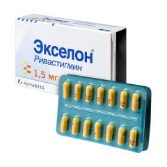 Ривастигмин - селективный ингибитор ацетил- и бутирилхолинэстеразы головного мозга, применяемый для лечения болезни Альцгеймера и деменции при болезни Паркинсона. Ривастигмин замедляет разрушение медиатора ацетилхолина, вырабатываемого функционально сохранными нейронами. При этом ривастигмин селективно увеличивает содержание ацетилхолина в коре головного мозга и гиппокампе, и, таким образом, способствует улучшению холинергической нервной передачи. Экселон может оказывать положительное действие при снижении когнитивных функций, связанных с дефицитом ацетилхолина, в частности, при деменции, ассоциированной с болезнью Альцгеймера и болезнью Паркинсона. Кроме того, существуют доказательства того, что ингибирование холинэстераз может замедлять образование фрагментов белкового предшественника бета-амилоида, принимающего участие в амилоидогенезе, и, таким образом, замедлять формирование амилоидных бляшек, являющихся одним из главных патологических признаков болезни Альцгеймера.