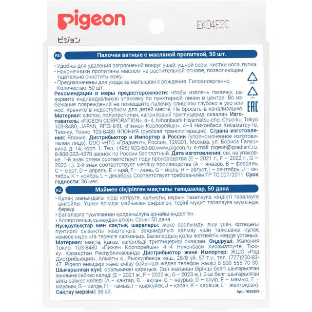 Пиджен ватные палочки масляная пропитка индивидуальная упаковка №50