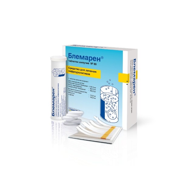 При растворении шипучих таблеток Блема¬рен® в воде образуется калия-натрия гидроци¬трат и углекислый газ. При приеме препарата происходит повышение показателя pH мочи. Таким образом, препарат растворяет и пре-дупреждает образование мочекислых камней. Кроме того, усиливает выделение цитратов и снижает выведение кальция, улучшает раство-римость оксалата кальция в моче, ингибирует образование кристаллов и, следовательно, препятствует образованию кальций-оксалатных камней.