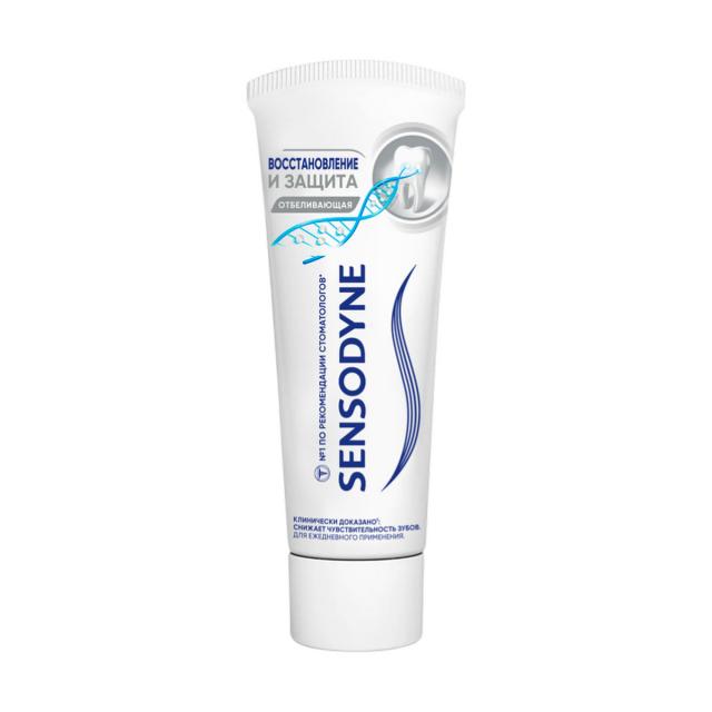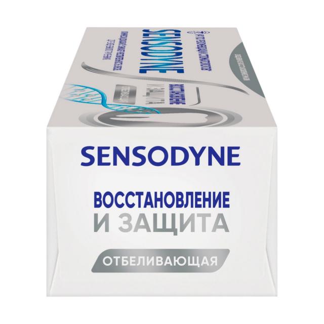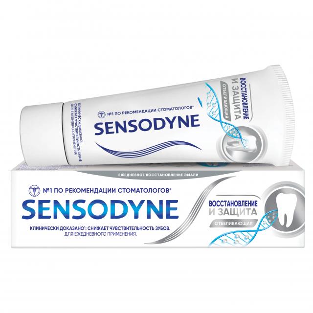 Sensodyne - бренд №1 по рекомендации* стоматологов для чувствительных зубов. Оголение дентина является причиной повышенной чувствительности зубов. С зубной пастой Sensodyne Восстановление и Защита Отбеливающая у вас есть возможность восстановить нормальную чувствительность. Зубная паста Sensodyne Восстановление и Защита Отбеливающая образует на поверхности чувствительных участков зубов защитный слой, сходный по составу с естественной эмалью зубов. Используйте пасту Sensodyne Восстановление и Защита Отбеливающая 2 раза в день для восстановления и защиты зубов от чувствительности. Вместе с тем, паста Sensodyne Восстановление и Защита Отбеливающая помогает поддерживать естественную белизну зубов**.
