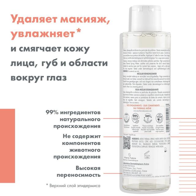Очищающий мицеллярный лосьон Avene Micellar lotion мягко очищает от повседневных загрязнений и макияжа чувствительную кожу, склонную к появлению раздражения, а также губы и область вокруг глаз.
