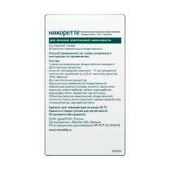 Действующее вещество: никотин-полимерный комплекс – 11 мг (указанное количество эквивалентно 2,2 мг никотина, включая 10 % избыток).