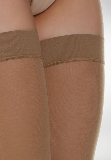 Чулки Relaxsan BASIC 280 den (арт. 970) - с компрессией 22-27 мм. рт. ст., 2 класс. Компрессионные чулки непрозрачные, с силиконовой резинкой, укрепленным мыском и пяткой. Резинка без кружева, с каплевидным нанесением геля. Анатомическая форма обеспечивает удобство и хорошую фиксацию изделия.