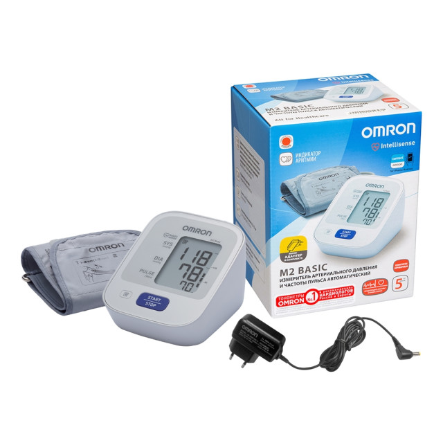 Тонометр OMRON M2 Basic с Адаптером – Автоматический измеритель артериального давления и частоты пульса.