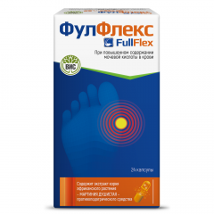 Капсулы «Фулфлекс» рекомендуются в качестве биологически активной добавки к пище – источника рутина, харпагозидов для лиц с повышенным содержанием мочевой кислоты в крови.