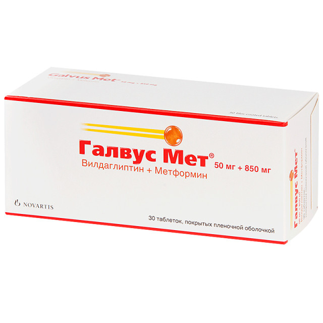 В зависимости от дозы уже принимаемого метформина, лечение Галвусом Мет можно начинать с одной таблетки дозировкой 50 мг/500 мг, 50 мг/850 мг или 50 мг/1000 мг 2 раза в сутки.