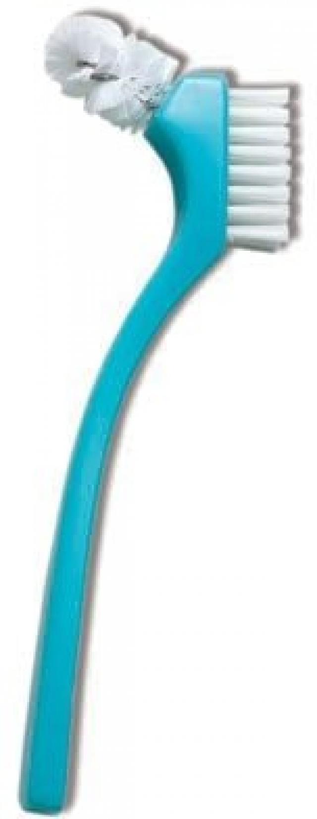 Основная щетка состоит из плотных щетинок, которые тщательно очищают протезы, не повреждая и не царапая их поверхность.