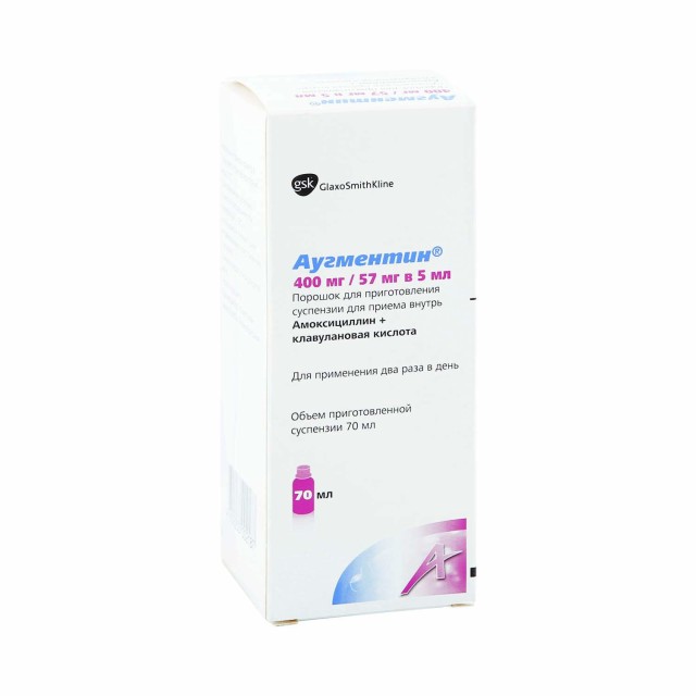 Аугментин порошок для приготовления суспензии внутрь 400мг+57мг/5мл 12,6г 70мл