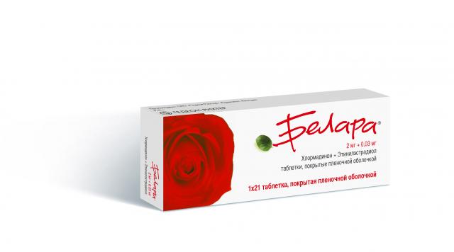 Входящий в состав препарата Белара® хлормадинона ацетат - гестаген, обладающий антиандрогенными свойствами. Его действие основано на способности замещать андрогены на специфических рецепторах, исключая и ослабляя эффект эндогенных и экзогенных андрогенов. Индекс Перля равен 0,291 - 0,698, в зависимости от того, насколько тщательно женщина соблюдает режим приёма препарата.