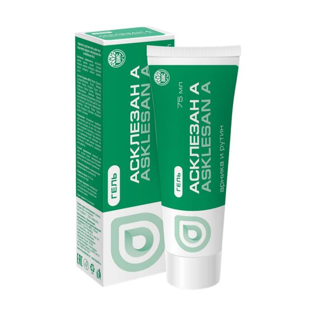 Гель для ухода за кожей ног. Снимает напряжение, тяжесть и отечность, освежает уставшие ноги. Содержит экстракт лесного орешника, который укрепляет стенки капилляров и вен, повышает их эластичность, улучшает местное кровообращение, в результате чего снижается интенсивность сосудистого рисунка на коже. При длительно применении геля «Асклезан А» нормализуется цвет кожных покровов, постепенно сглаживаются косметические дефекты.
