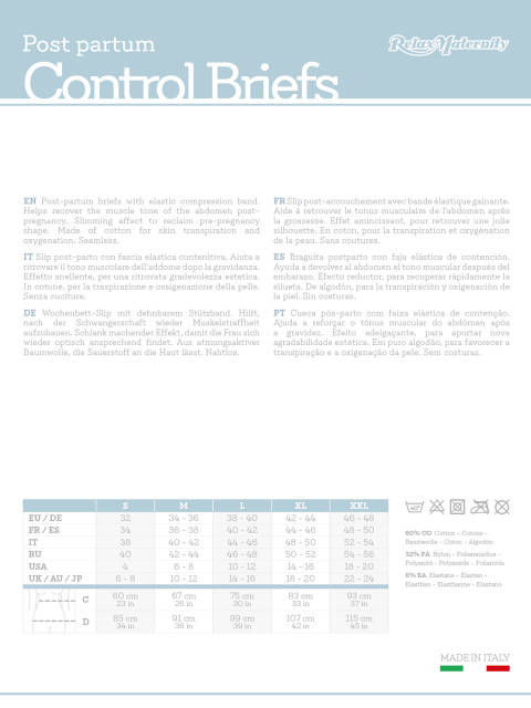 Послеродовый бандаж RelaxMaternity в виде трусиков арт. 5200 - специально предназначен для облегчения восстановления и поддержания в тонусе брюшной мышцы, которая растягивается во время беременности, а его специальная форма помогает восстановить правильный тонус мышц живота. Давление на талии создает эффект похудения, возвращает стройность фигуре. Высокий процент хлопка обеспечивает прекрасную воздухопроницаемость, а в сочетании с отсутствием швов помогает избежать раздражения кожи, восстанавливая ее прежнюю эластичность. Хлопковая нить находится во внутреннем слое в непосредственном контакте с кожей, что придает изделиям мягкость и комфорт.