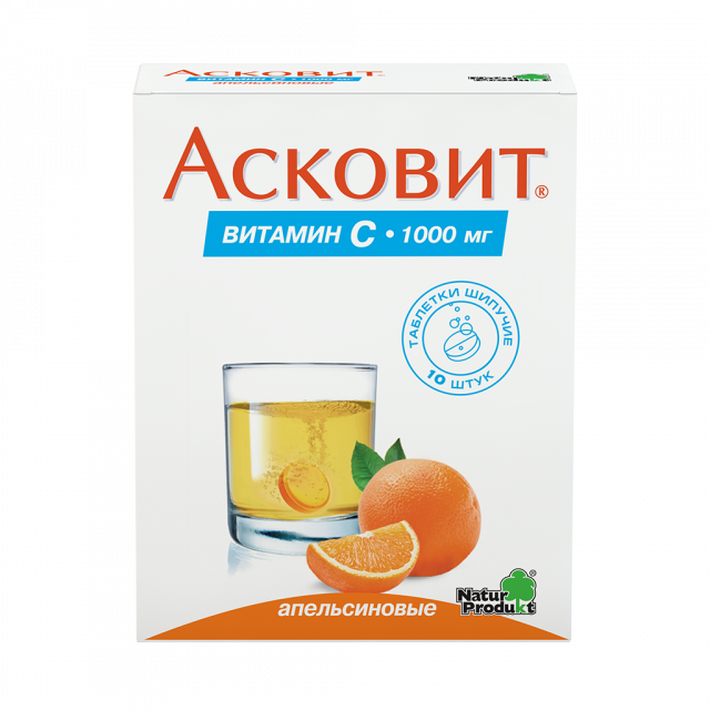 Асковит Вит. С таблетки шипучие 1000мг апельсин №10
