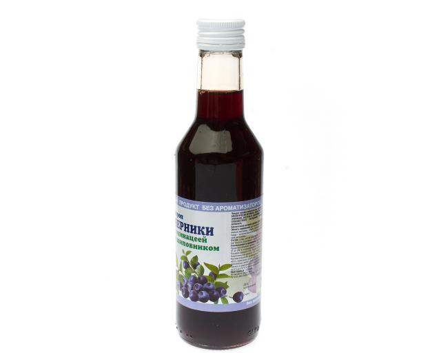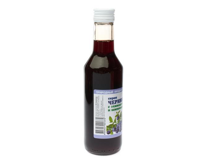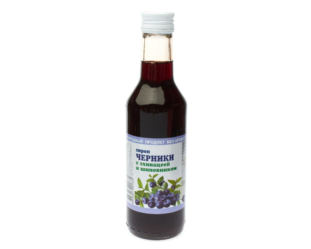 Состав: сахар, настой ягод черники, экстракт шиповника, экстракт эхинацеи, аскорбиновая кислота, консервант - сорбат калия, вода.